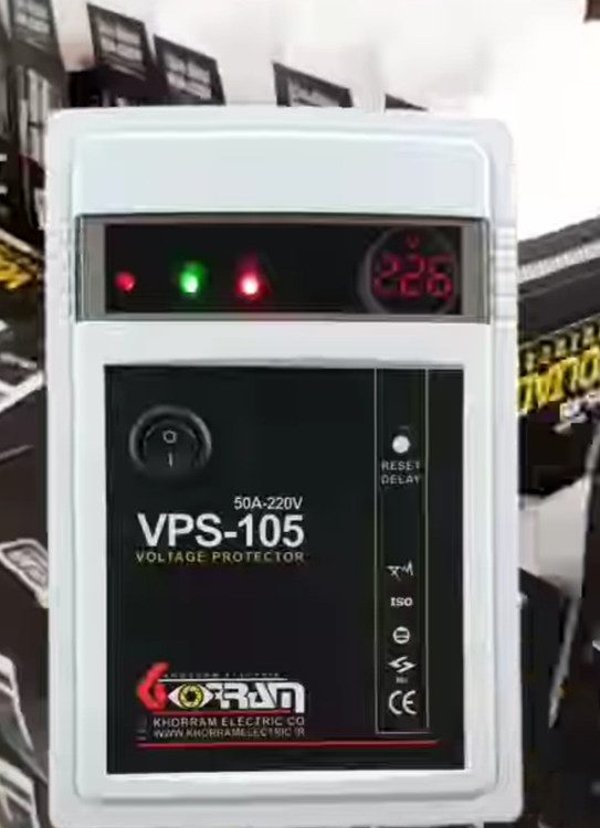 محافظ ولتاژ برق vps-۱۰۵ خرم الکتریک دارای سه سال ضمانت تعویض شرکت خرم الکتریک