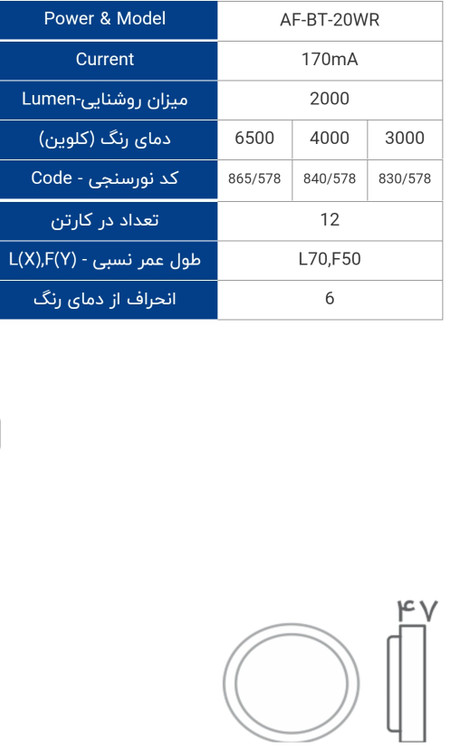 چراغ سقفی ال ای دی 20 وات روکار Tri Proof افراتاب