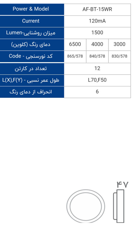 چراغ سقفی ال ای دی 15 وات روکار Tri Proof افراتاب