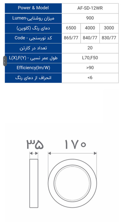 پنل گرد ال ای دی روکار 12 وات افراتاب