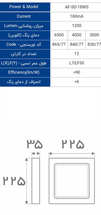 پنل مربع ال ای دی روکار 18 وات افراتاب
