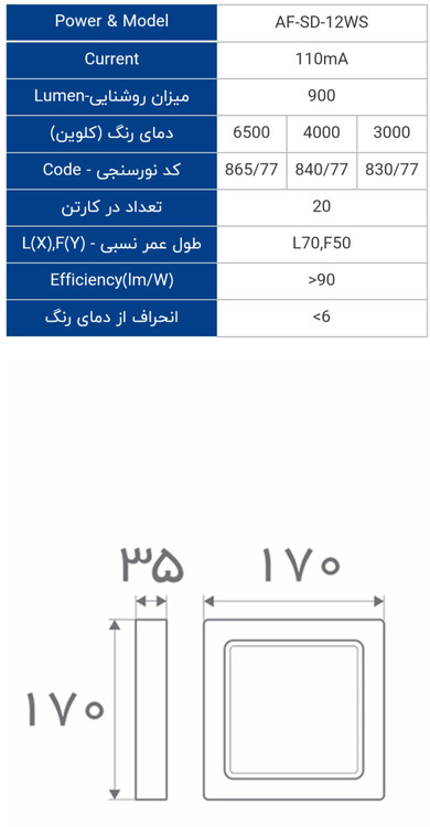 پنل مربع ال ای دی روکار 12 وات افراتاب