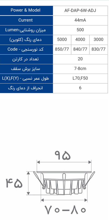 چراغ سقفی ال ای دی 6 وات سری مارس افراتاب