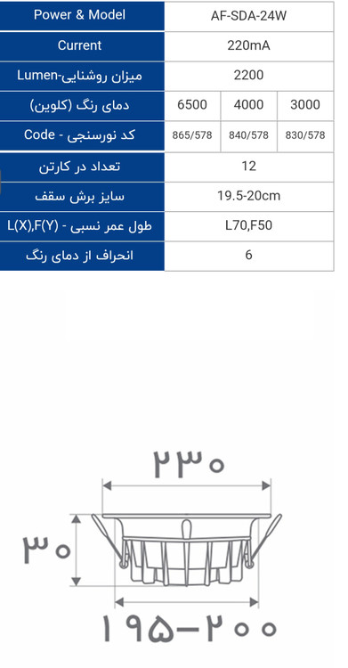 چراغ سقفی ال ای دی 24 وات سری ونوس افراتاب
