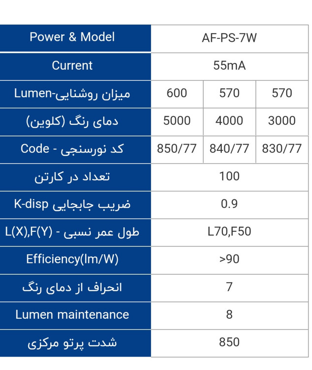 لامپ ال ای دی هالوژن 7 وات پایه Gu10 افراتاب
